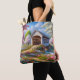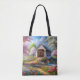 Färgbelagd bron och flod med vår/blommigt tygkasse
