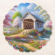 Färgbelagd bron och flod med vår/blommigt underlägg papper