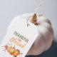 Färgbelagd, genomskinlig och välfylld med pumpgift presentetikett