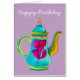 Färgbelagd turkisk tekanna, vattenfärg hälsningskort