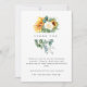 Begravningstack. Familj namn och tack på baksidan. Typografi. Solros och Peony blommigt spray. Meddelande.