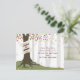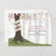 Ett vykort från bröllop spara datum med en illustration av träd i skogen. Träd har löv för orange, rosa, lila, gult och grönt, exponerade rötter och en bräddel med banner som kan anpassas med brud & grooms namn.