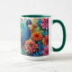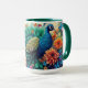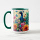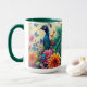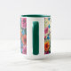 Kaffet mugg har två blomkrukor omgivna av blommor. Allt är färglöst.