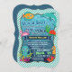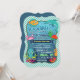 Det är en pojke! Toppen söt, roligt havstid, nautisk temaféflicka duschar inbjudan på teal grönt och vit rand med ljusa färger. Färgfulla, akvatiska och tecknad havslevande varelser är akvarier och gult, grönt och orange havssköldpadda, fisk av teal och orange, turkosdelfin, orange av sjöfågel, ljus rosa krabba samt orange och rosa av korall på golven. Lustigt typsnitt verkar flyta under vatten med bubblor under havet i bakgrunden.