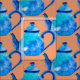 Färgblå tekanna, vattenfärg tyg