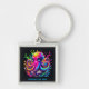 Färgbläckfisk Stänk Fyrkantig Silverfärgad Nyckelring