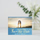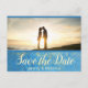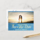 Spara vykortets datum med plats för foto och har en blå bakgrund för eleganten. Anpassa.