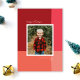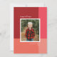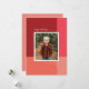 En ren och modern design med en färgblock bakgrund i rött, rosa och korall med ett enda foto. Ett handskrivet typsnitt kompletterar ett enkelt typsnitt för familjenamnet. Byt ut meddelandet och färgen på baksidan för dina egna!