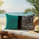 Denna trendiga ytterstödskudde har stora rektangulära färgblock i turkosgrönt och ett silver- och svart leopardsnatttryck, åtskilda av ett smalare svart färgblock i mitten.