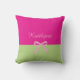 Förgyll din rumsdekor med en söt båge på en dekorativ kastkudde! Denna design har färgblockering med en båge och ett band för att knyta ihop allt. Ena sidan visar ditt namn i skrivstil, och på den andra sidan din monogram-initial. Redigera mallen för att anpassa dessa kastkuddar och förvandla din korridor eller systerhusdekor till något verkligt speciellt.