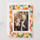 Det här färgglada nyårskortet sprutar glädje i ett lekfullt blockmönster i rosa, gröna, orange och gyllene nyanser. Centrerat runt ditt foto har det ren typografi som lyder “skål för det nya året” för en ljus, festlig touch. Perfekt för par, familjer eller alla som älskar en modern, konstinspirerad högtidlig look. Den livfulla paletten ger en festlig stämning till din hälsning medan den hålls polerad och stilren.