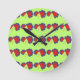 Färgblomma Mönster i Gröntens bakgrund Rund Klocka
