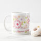 Cute- och elegant-kaffet mugg med färgat vår blommor med Maj din dag fylls med kärlek och lycka!!! text! Allt är anpassade och du kan göra unika och underbara gåvor speciellt för mamma, för henne, för dottern, mormor, moster eller vem du än har kärlek i helgdagar, födelsedagar, bröllop, årsdagar, mors dag, påsk eller speciella evenemang eller tillfälle. Du kan anpassa det här trendigets dryckesvarugåva med ett namn och säga eller lämna det som det är.