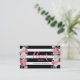Modern elegant rosa och vit ros blommigt buquet över svart och vitt rand. Anpassadets visitkortsmall för Hair-design.