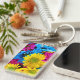 Elegant, snyggt och sofistikerat foto av blommor av blått, gult och rosa Daisy. Modern gåva och trendig, perfekt för blommigtens design älskare i ditt liv.