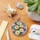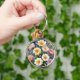 Färgblommor Elegant Vattenfärgsfärgning Rund Silverfärgad Nyckelring