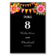 Lägg till en fest till firande med det här personlig mexikanska bordsnumret Bröllop, perfekt för ett Fiesta Bröllop-tema! Den här designen har en stark rosa, orange och gula blommor och en intensiv buntning av flagga mot en chicens svarta bakgrund och sammanför färgstark roligt och elegans. Kombinationen Mexiko-stil och manuset på typsnitt ge i det här bordsnumret ger ett glatt, berömmande fläkt som på ett vackert sätt kompletterar din svidande décor i bröllop. En perfekt som avslutar på din festinspirerade mottagning!