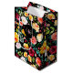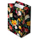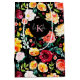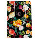 Färgblommor i engelska trädgården, sömlös mönster över svart bakgrund. Anpassade monogram i rosa och vitt på en svart cirkel.
