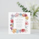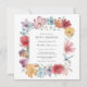 Färgblommor Inbjudningskort för möhippan. Gå med oss i firande i kärlek med handmålade vildblommor i röda nyanser, rosa, guld och lila med en söt blå drakfluga och en marschfjäril! Dessa vackra blommar kommer säkert att ge glädje och glädje åt er speciella händelse!
