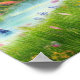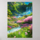 Färgblommor och vattenfall i en Grönt Valley Poster