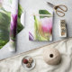 Modern rosa och lila vattenfärgblommor med grönt löv