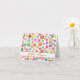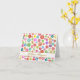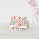 Färga blommor. Texten framför kortet på ryska säger: Grattis på födelsedagen.