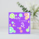 Färgbubblor mot violett bakgrund .Cheerful inbjudningskort för barn' tillfälle /annoncements.Du kan ändra all text på båda sidor.På så sätt passar det för alla åldrar eller party /annoucements .Anpassningsbar inbjudningsmall av Alma Wad. Se matchande frimärke: