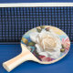 Det här är en vacker målning av en bukett av ro. Ro är vitt och rosa i färg, vilket skapar en kontrast till den blå och rosa bakgrunden. Vit ros är en renhets- och oskuld-symbol, medan rosa ros står för kärlek och passion. Tillsammans representerar de människans dubbelhet, balansen mellan ljus och mörk och kärlek makt.