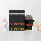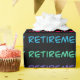 Färgfull text i lycklig Pension upprepas på en svart bakgrund.