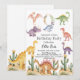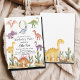 En söt design med färgstarka dinosaurier. Du kan anpassa den här inbjudan med dina egna uppgifter.