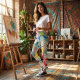 Färgdrivrutiner för vita knappar och penseldrag leggings