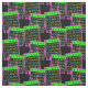 Denna design har neon färgade bingokort och utrymmemarkörer som skrivs ut på svart tyg.