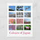 Unika färgfotografier av Japans natur, kultur och design i nyanser av blått, vitt och rosa.
