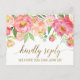 Det här postkortet med färgerna rosa och rosa peony blommor är perfekt för ett elegant bröllop. Den blomstermönstrade designen visar en vacker komposition av akvarell peonior i nyanserna rosafärgad och korall, matchad med delikat falskt guldfolie-kalligrafi. Inkludera hur många platser som är reserverade för varje gäst.