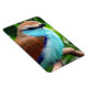 En offentlig domän med vackert färgad fågel med blått bröst och rödbrunt vingar sitta i träd i armar och ben.