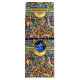 Vibrant, färglöst Vår blommor och små kolibrier i guld och blått. Elegant, konstnärlig, designinspirerad antika Art nouveau-bohemiska emeler i turkospblått,rött,teal,guld gult,violett,vit färg med 3D Blue sapphire gemstone.Digital grafikteknik,3D-modellering av Bulgan Lumini (c)
