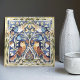 Denna mycket detaljerade mönsterruta har en symmetrisk arrangemang av färgstarka fåglar och blommor på en djup blå bakgrund. Med inspiration från vintage European Keramic Art and nature motifs blandar biet de ärftliga tonerna med graciös linebildning i en klassisk konst och Crafts stil. Konsten är perfekt för naturen älskare, fågelentusiaster eller dem som dras till eleganten, det gamla botaniska mönster, och den tillför en produkt en tidlös charm och levande karaktär.