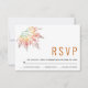 Färgfläckat löv-bröllop OSA-svarskort för bränd orange. Ett vackert, färglöst löv-tryck på hösten färg - brunt, orange, rött och grönt - täcker det lämnat övre hörnet på detta svarskort. "OSAN" och baksidan är av bränd orange färg.