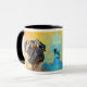 Denna ljusa och färgstarka mugg firar den förtjusande Pug-hund! Två sidor av mugg har ett vackert porträtt av lite Pug mot en ljusskygg bakgrund. Bland de dominerande färg finns orange, guld, gult och blått. I mitten finns ett skript som säger Pug, men du kan ändra det eller till och med anpassa det om du vill. Mugg kommer att bli uppmärksammat!