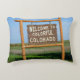 En bild av Colorado State Line-tecknet som är ljust och färglöst från westerna Kansas av Holly Colorado med grönt gräs och blå himmel som finns på en ACCENT PILLOW.