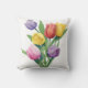 Lägg till lite färg i ditt hem med blommigt dekorativ kudde med dessa briljanta tulpaner av färgad i rött, gult, rosa och lila. Mönstret återges från min ursprungliga vattenfärgsmålning och skulle ge en omhuldad gåva till Påsk, Mors dag, som födelsedagspresent eller till vilken tillfälle som helst.