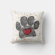 Hund- och hjärtfärgstryck i rött, svart och grått. Färgstänk stänk bakgrund. Anpassningsbar dekorativ kudde. Gift-idé för hundälskare.