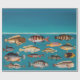En vacker design som visar olika typer av färglös fisk som simmar under det blå havet vatten. En perfekt för alla som fiskar i kärlek, fiskar, utomhus, äventyr sport, natur och nautiska teman.