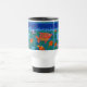 En färglös Resemugg utan spill för att anpassa sig, med en mönster av färggrann fisk som simmar i havet, från en papper kollage av Judy Adamson, som målats med en liten hand. Inom ramen för insamlingen av ?Fisk i havet? i Posh och Painterly kan denna utformning anpassas till vilken Mugg som helst.