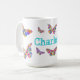 Söt, färglös Butterfly mönster personlig, lägg till Namn Mugg. En vacker flerfärgad samling handmålade fjärilar som flödar runt namn Charlotte. En unik gåva för familj och vänner. Slamflygets illustrationer av konstnären Catherine Sweetman