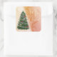 Färgfläckad dekorerad julgran fyrkantigt klistermärke