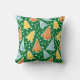 Modern, färglös funky, stiliserad Julgranar mönster grönt dekorativ kudde med färgstark Julgranar i turkos, orange, abstrakt och gult i snöflingornas bakgrund.