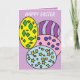 Det här vackra färgkortet i Påsk har skarpa mönstrade ägg och redigerbar text. Det finns en samordnande presentsäck att lägga till i uppsättningen.