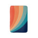 Abstrakt illustration av färgstarka (rött, orange, blått, turkos, marint blått) sol-strålar med böjd geometrisk dekoration för rand