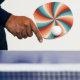 Färgfläckar i stil vågigt röntgenstrålar i sol pingisracket